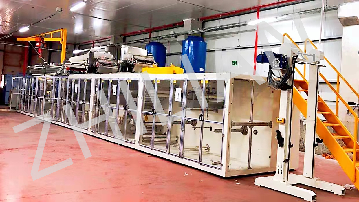 Disposable Pet Training Pad product composed of five layers of non-woven, tissue paper, fluff pulp core, tissue paper and bottom film. The function of release paper can also be added according to customers' needs. Used to fix products. The machine has added a special function of applying pet training liquid to assist pets in fixing the excretion position. Disposable Pet Training Pad machine is made up of absorbent core making system, training liquid application system,final product making systems, drive systems, conveyor systems, electrical control systems, self-checking systems and auxiliary system.